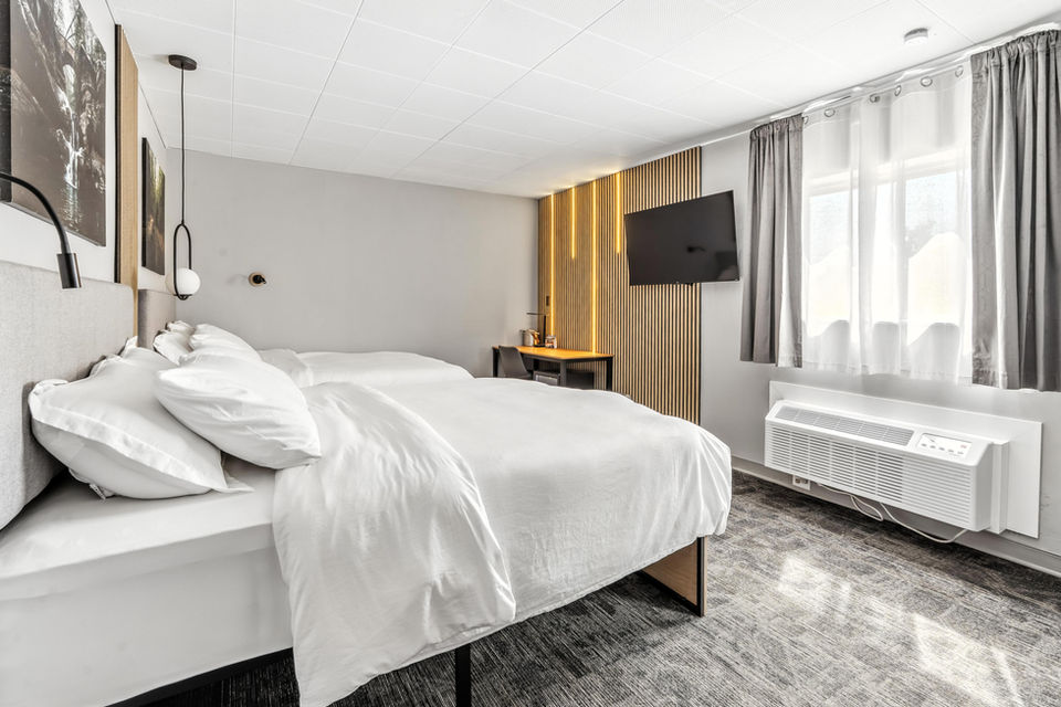 The Double Queen offers a cozy and inviting retreat, thoughtfully designed for your comfort. Enjoy the convenience of air conditioning, ensuring the perfect temperature no matter the season, and a spacious wardrobe to keep your belongings neatly organized during your stay.